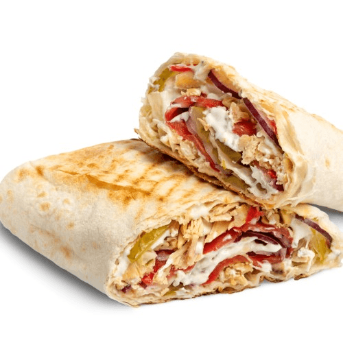 Sizzling Grilled Chicken served in a warm Pita with Roma Tomatoes, Banana Peppers, Lettuce, Cucumbers, Red Onion, and Housemade Garlic Sauce.