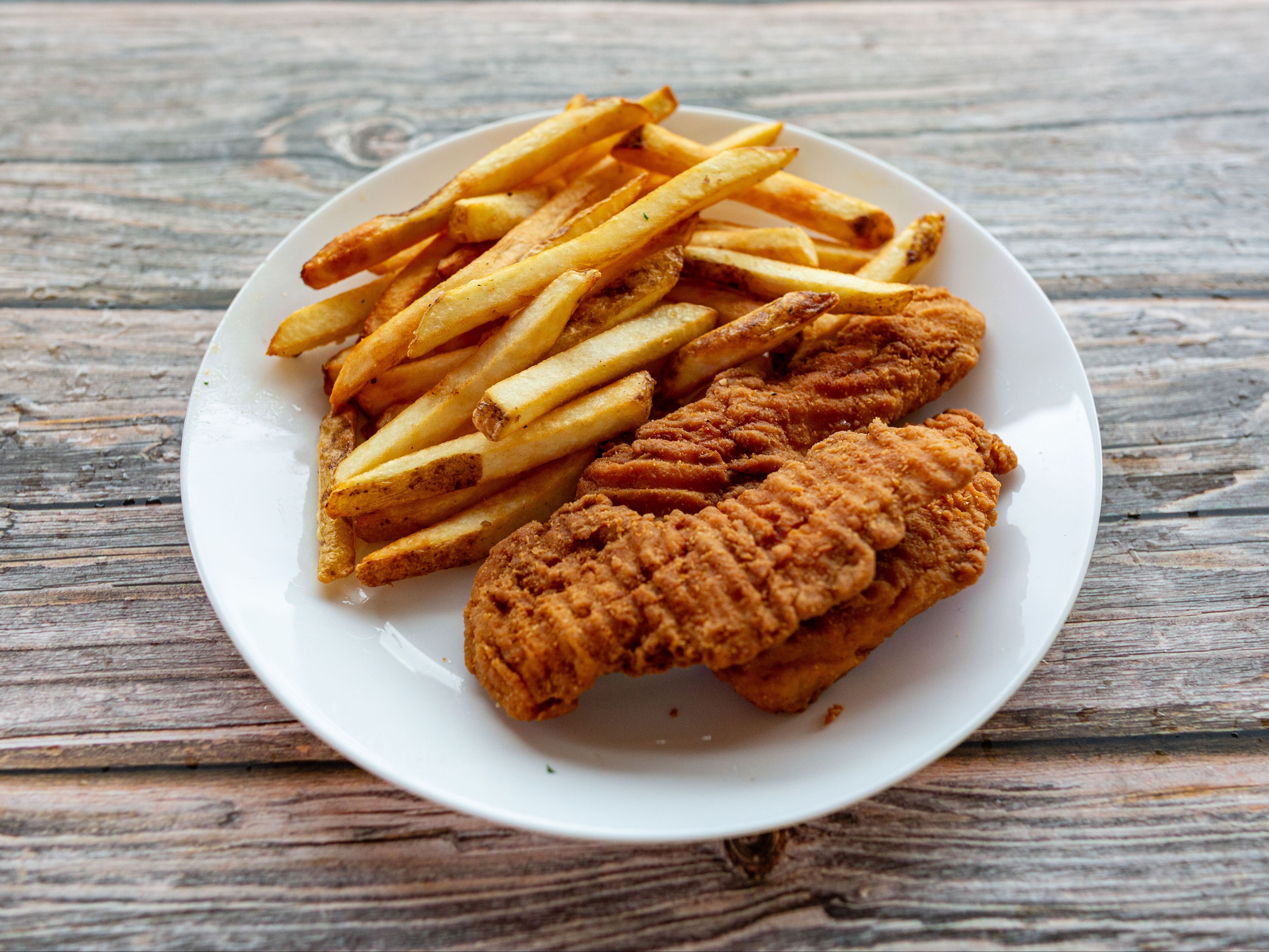 Three fried chicken tenders. Includes small fries and choice of apple juice or milk.